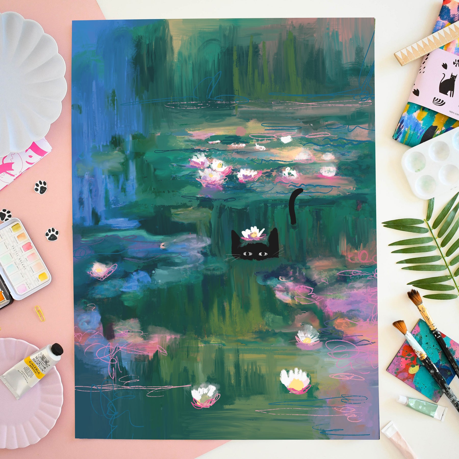 Clawed Monet Cat Tea Towel