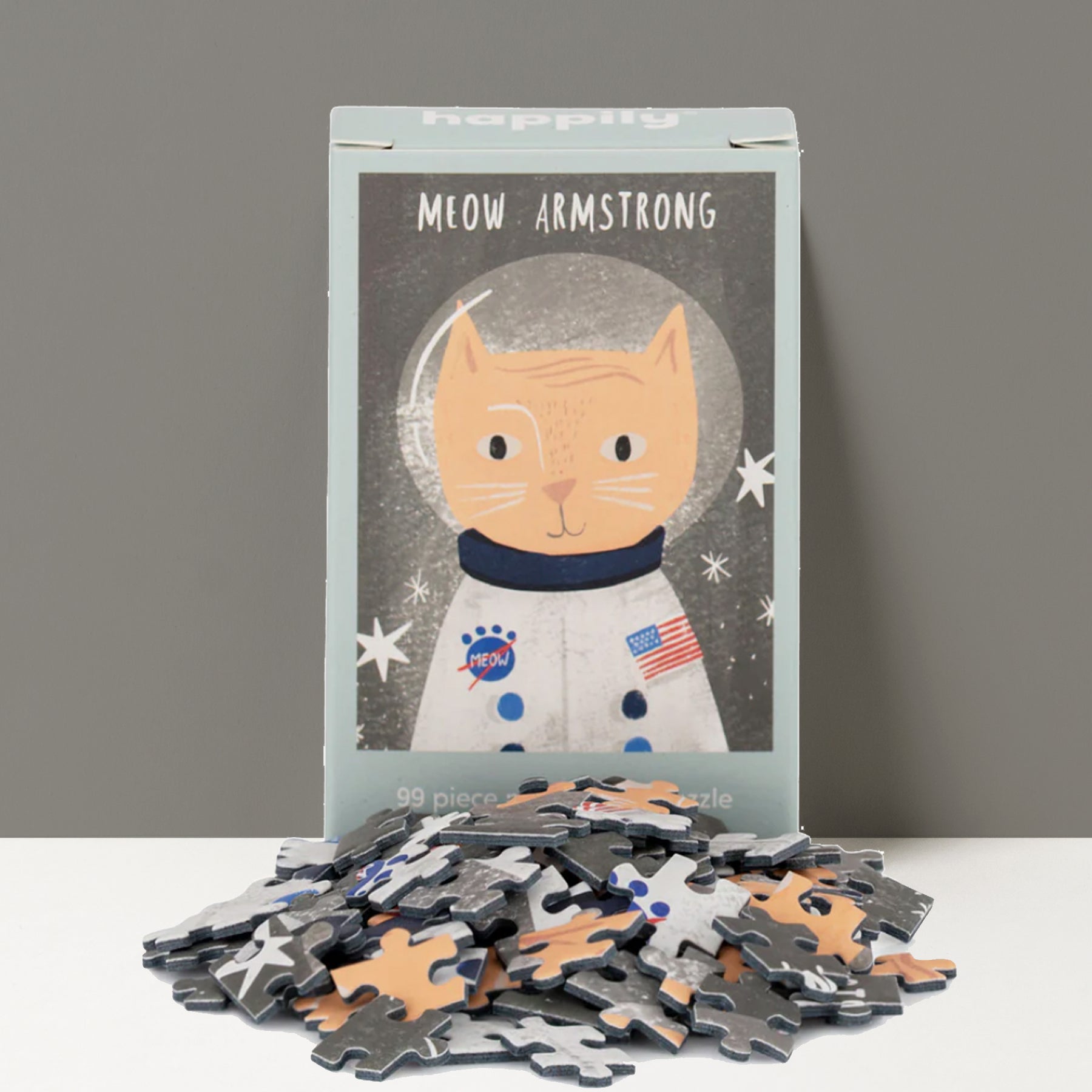 99 Piece Mini Jigsaw Puzzle with Lance Armstrong inspired illustration now reimagined as 'Meow Armstrong.