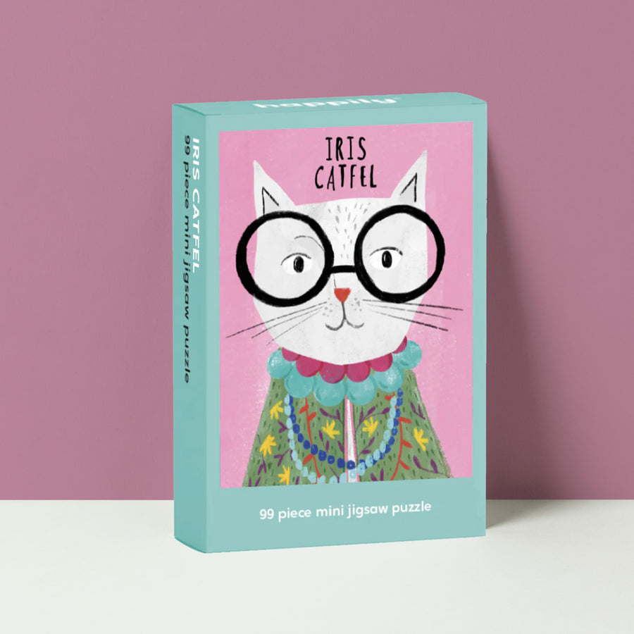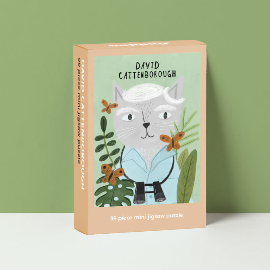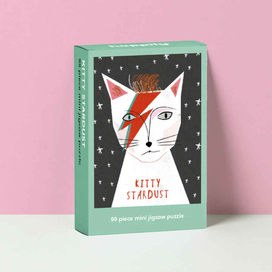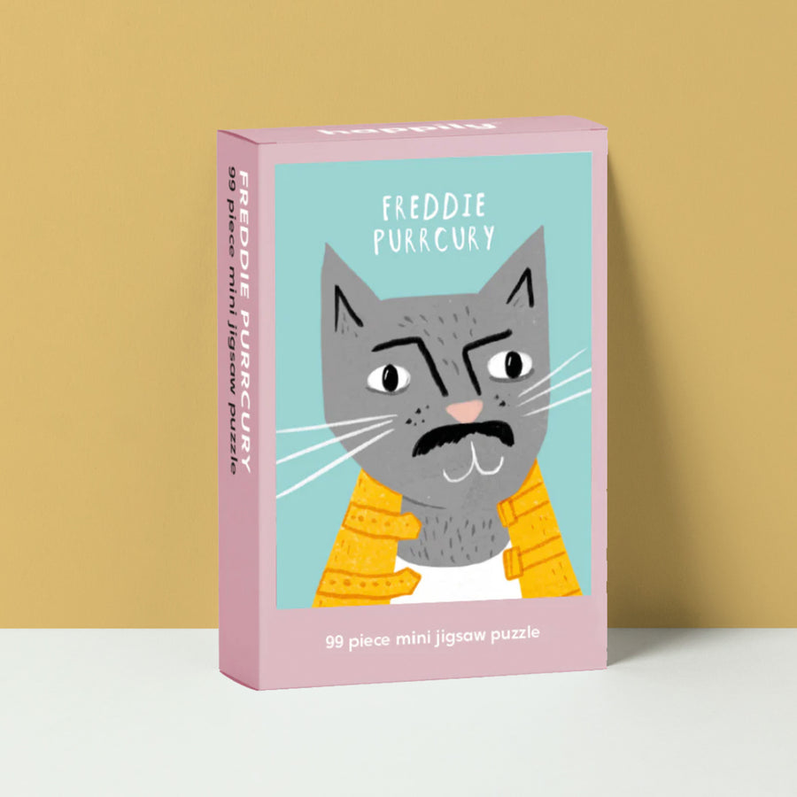 99 Piece Mini Jigsaw Puzzle with Freddie Mercury inspired illustration now reimagined as 'Purrcury'.